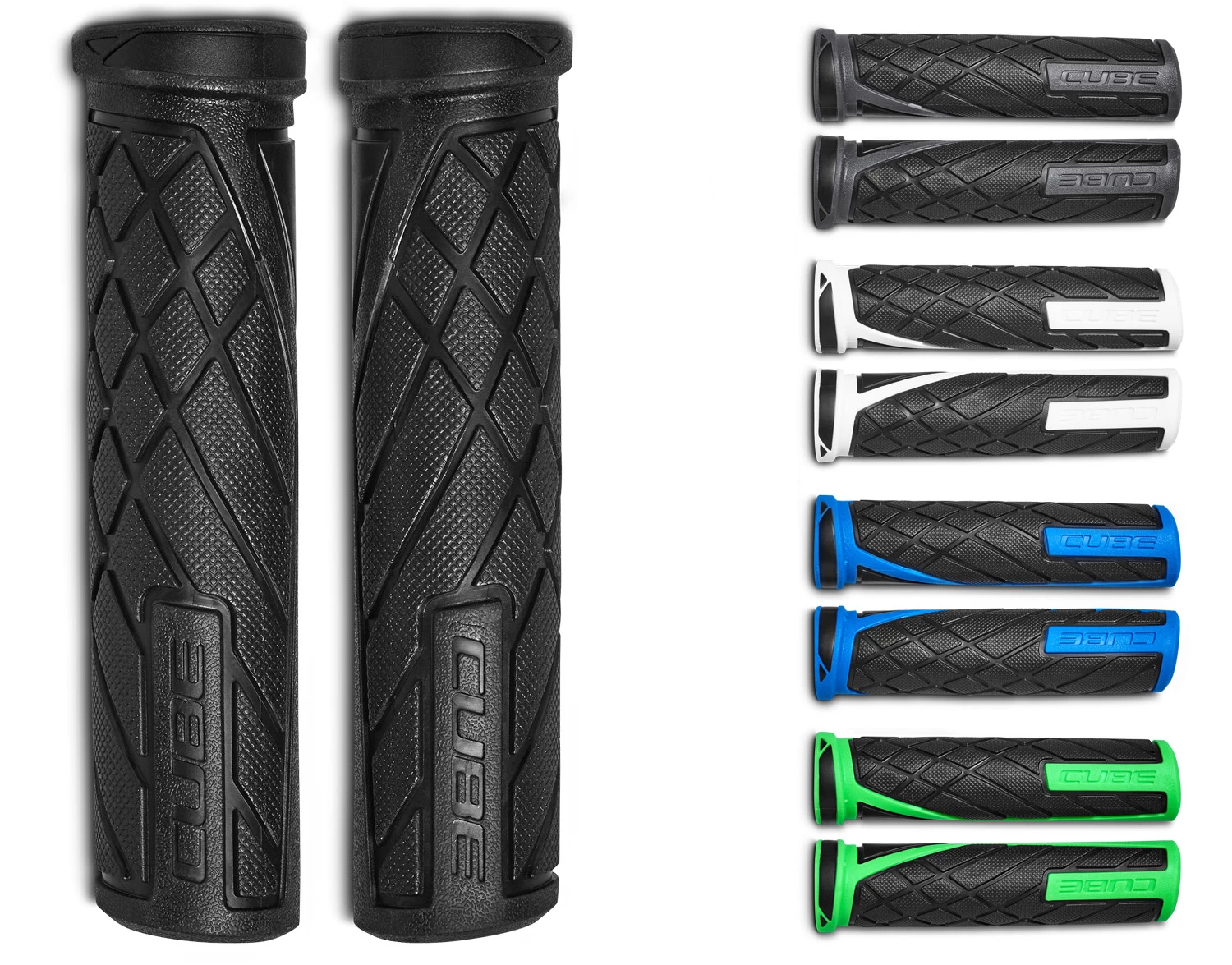 Les poignées Cube Dual-Density, surfaces fonctionnelles orientées anatomiquement avec une structure différenciée offrent une adhérence et un confort optimaux, terminaison asymétrique.