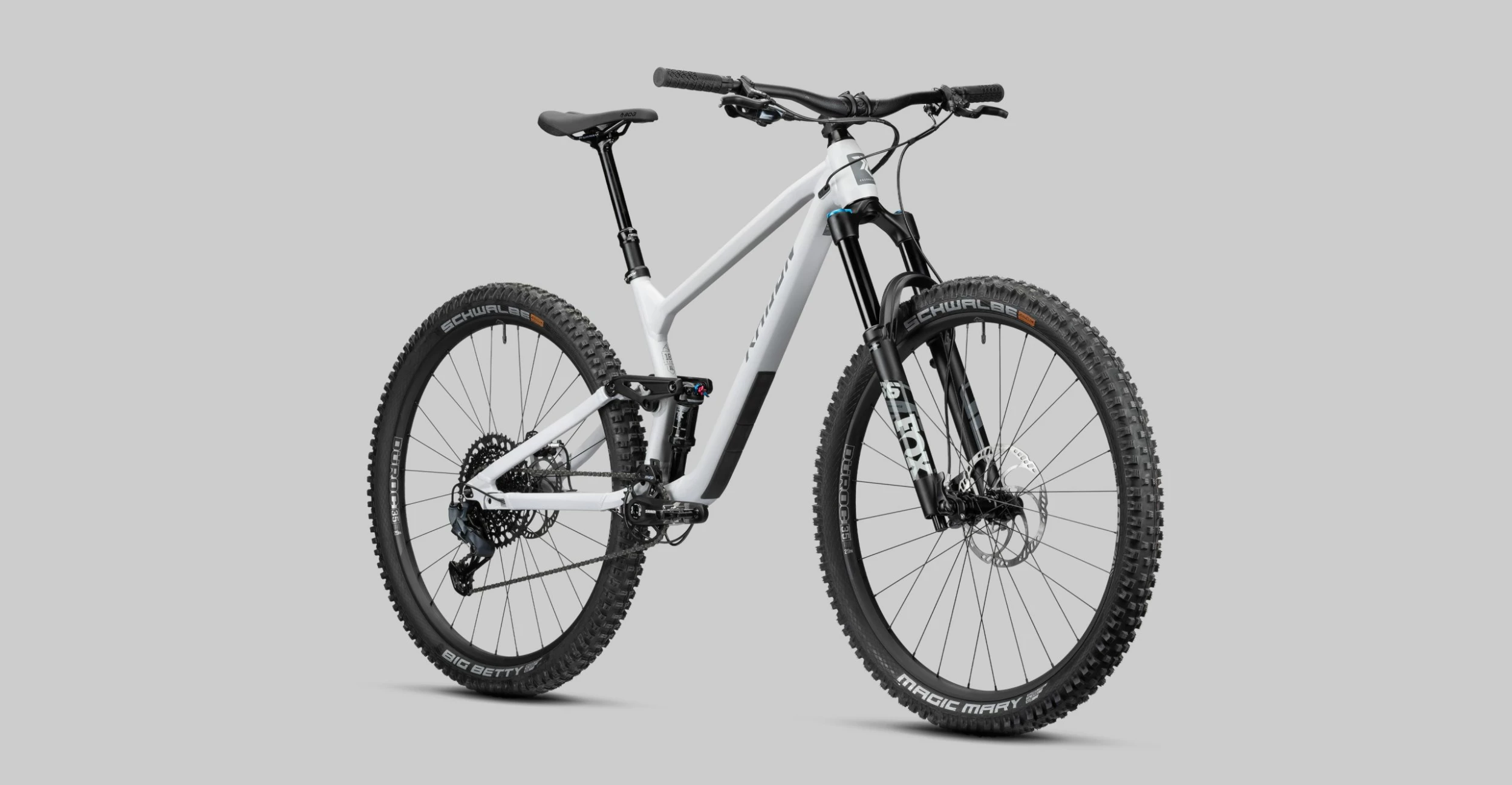 The Fox 36 Performance suspension fork with 150mm and the Fox Float DPS Performance shock with 140mm travel give you the performance you need to tackle any obstacle with elegance and ease. The Race Face Aeffect R stem and handlebar composition demonstrates the common thread that this trail bike follows. The SRAM drivetrain shines with its reliability. The combination of a 12-speed SRAM Eagle shifting group offers the perfect gearing to not only climb the mountains, but also keep up the speed on all trails! A Magura MT5 four-piston brake system front and rear rounds off the basic idea of a uniform interaction of the components, so that an absolutely coordinated functionality can be teased out. This perfection is just stunning! But the SLIDE TRAIL AL 8.0 goes one better! With the aggressive Magic Mary at the front and the supple Big Betty at the rear from Schwalbe, both with ADDIX Soft rubber compound and Supertrail casing, you always have endless grip and full control on the trail. The lightweight SUNringlé Düroc 35 Expert system wheelset rounds off the grandiose overall package. Unlimited riding fun with the SLIDE TRAIL AL 8.0!