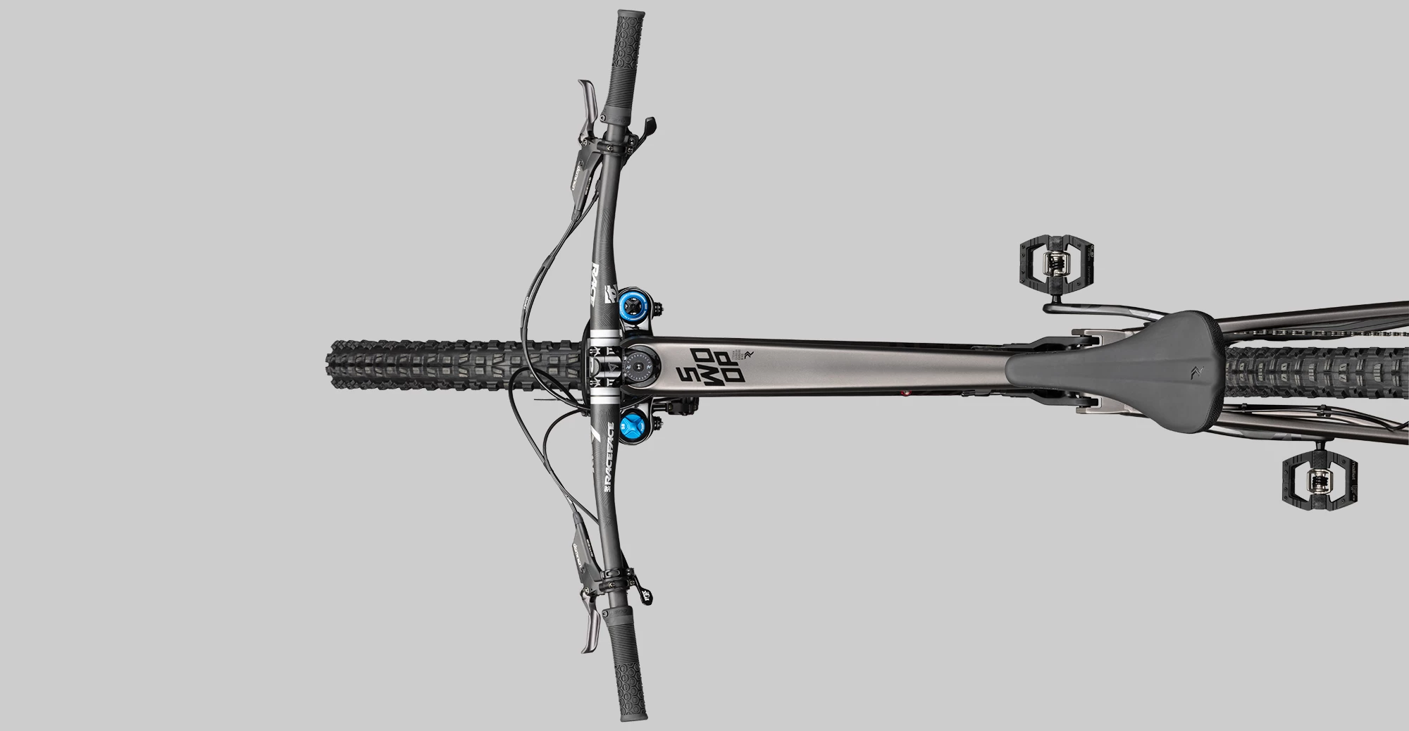 The specifications for the development of the carbon version of the SWOOP were clear – fresh design, modern kinematics and new shock linkage. No stone has been left unturned. Nevertheless, we have retained parts of the DNA of the popular SWOOP AL – progressive geometry, 29″ wheels, possibility of geometry adjustment, 170mm suspension travel – no compromises were made here. The kinematics of the SWOOP are progressive, coil shocks also fit well with the bike’s characteristics. For high manoeuvrability, we were able to keep the chainstays short at 438mm; despite the long wheelbase and the flat angles, tight corners are no obstacle. Instead of a flip chip for geometry adjustment, we designed the headset to be adjustable, so the cups are angled and can be rotated to vary the head angle by 1.5 degrees.